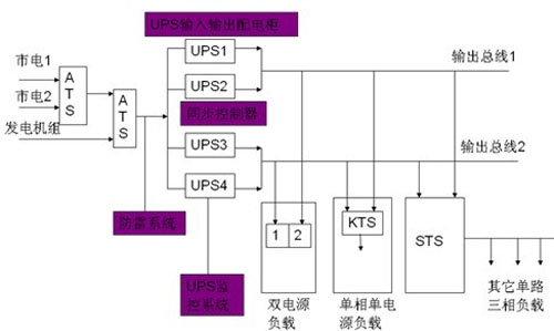 鑒于現在通信網絡機房內的絕大多數IT設備,比如服務器、路由器、交換機、光端機、網關、磁盤陣列機和通信設備等,所允許的瞬間供電中斷時間僅為0.01-0.02秒左右。這就意味著: 對于關鍵性的通信負載系統而言,在運行中如果出現0.02秒以上“瞬間供電中斷”的故障時,就會造成“網絡癱瘓”事故發生。一旦網絡癱瘓后, 要想讓整個網絡重新恢復正常工作往往需耗時幾十分鐘--幾小時。顯而易見,由此會給用戶帶來巨大的經濟損失;谏鲜鲈颍覀儽仨毧紤]消除可能出現在UPS輸出供電系統中的”單點瓶頸”故障隱患,確保對這些關鍵性IT負載設備供電的連續性。