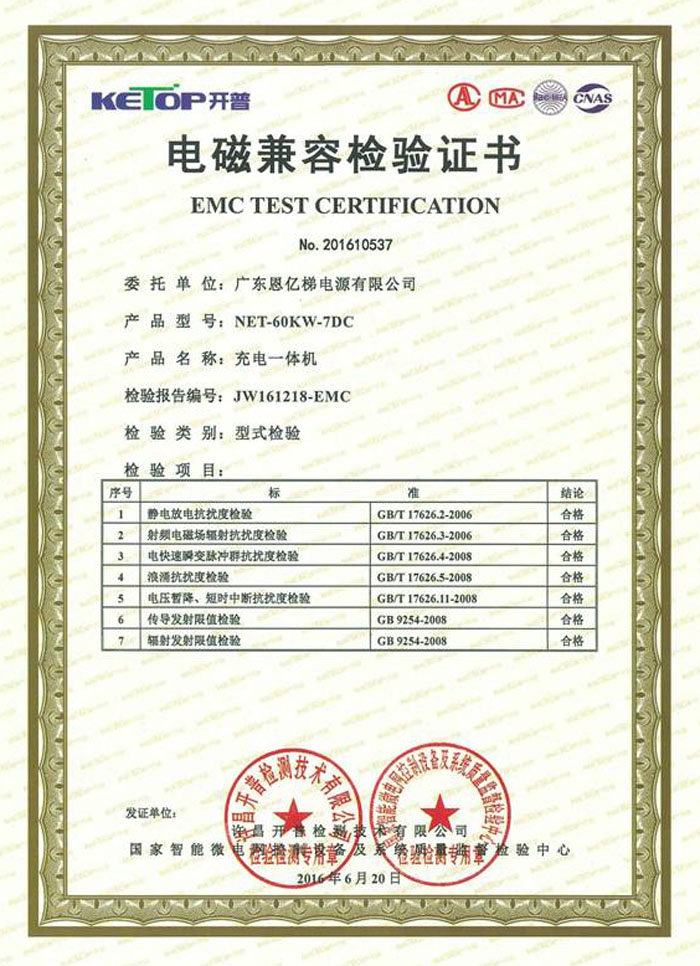 電磁兼容檢驗(yàn)證書(充電一體機(jī))