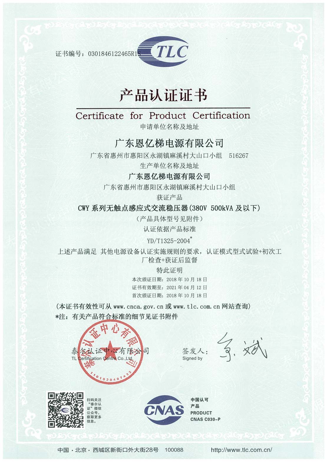 泰爾認(rèn)證(無觸點(diǎn)感應(yīng)式交流穩(wěn)壓器)