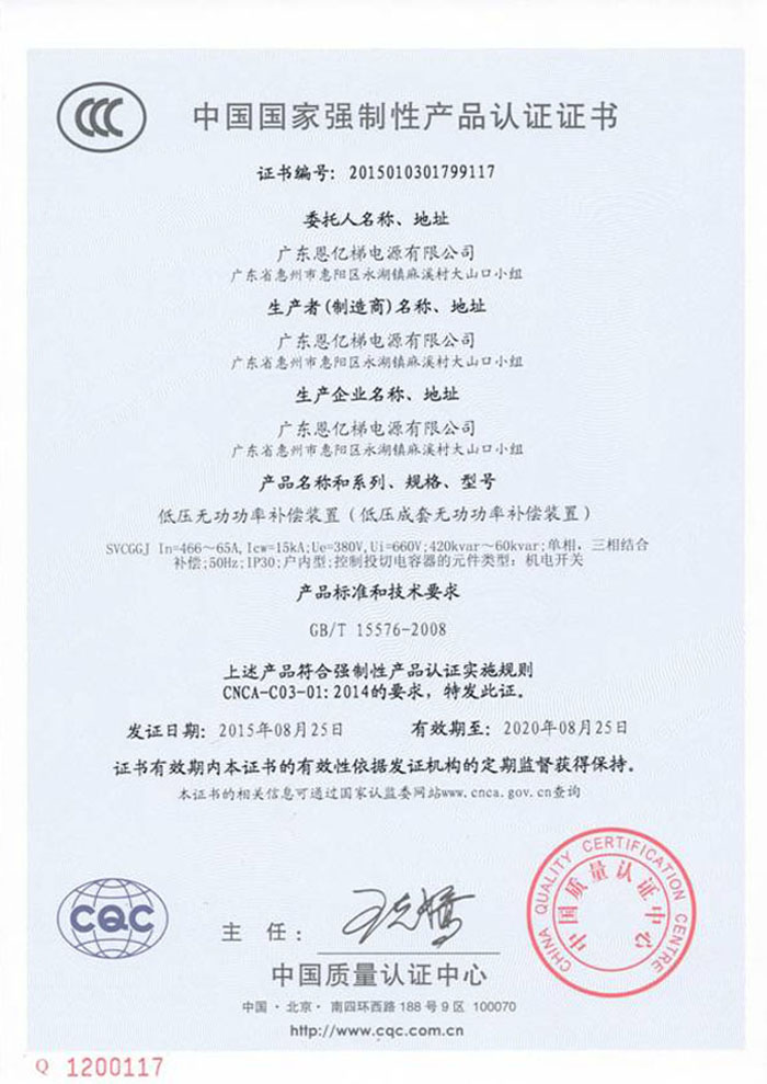 中國國家強(qiáng)制性產(chǎn)品認(rèn)證(低壓無功功率補(bǔ)償裝置)